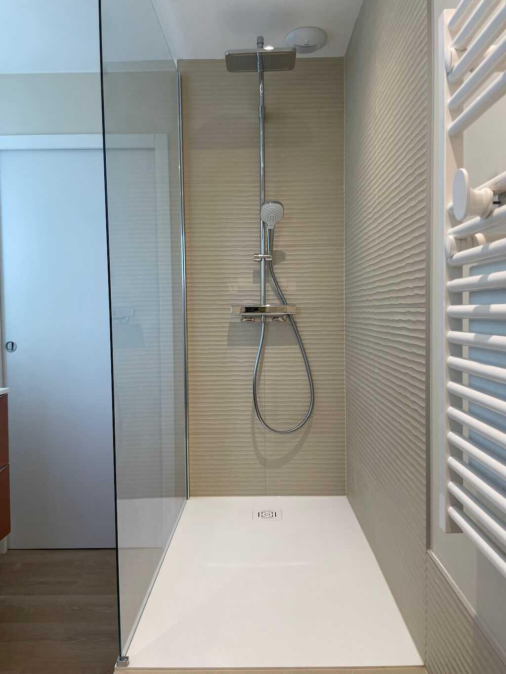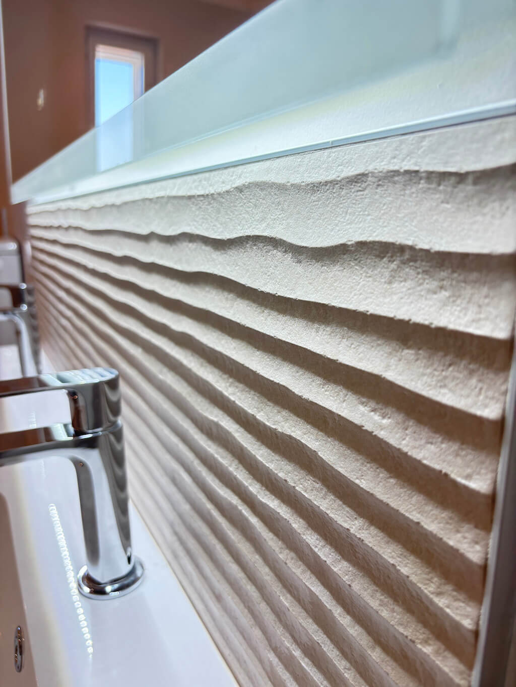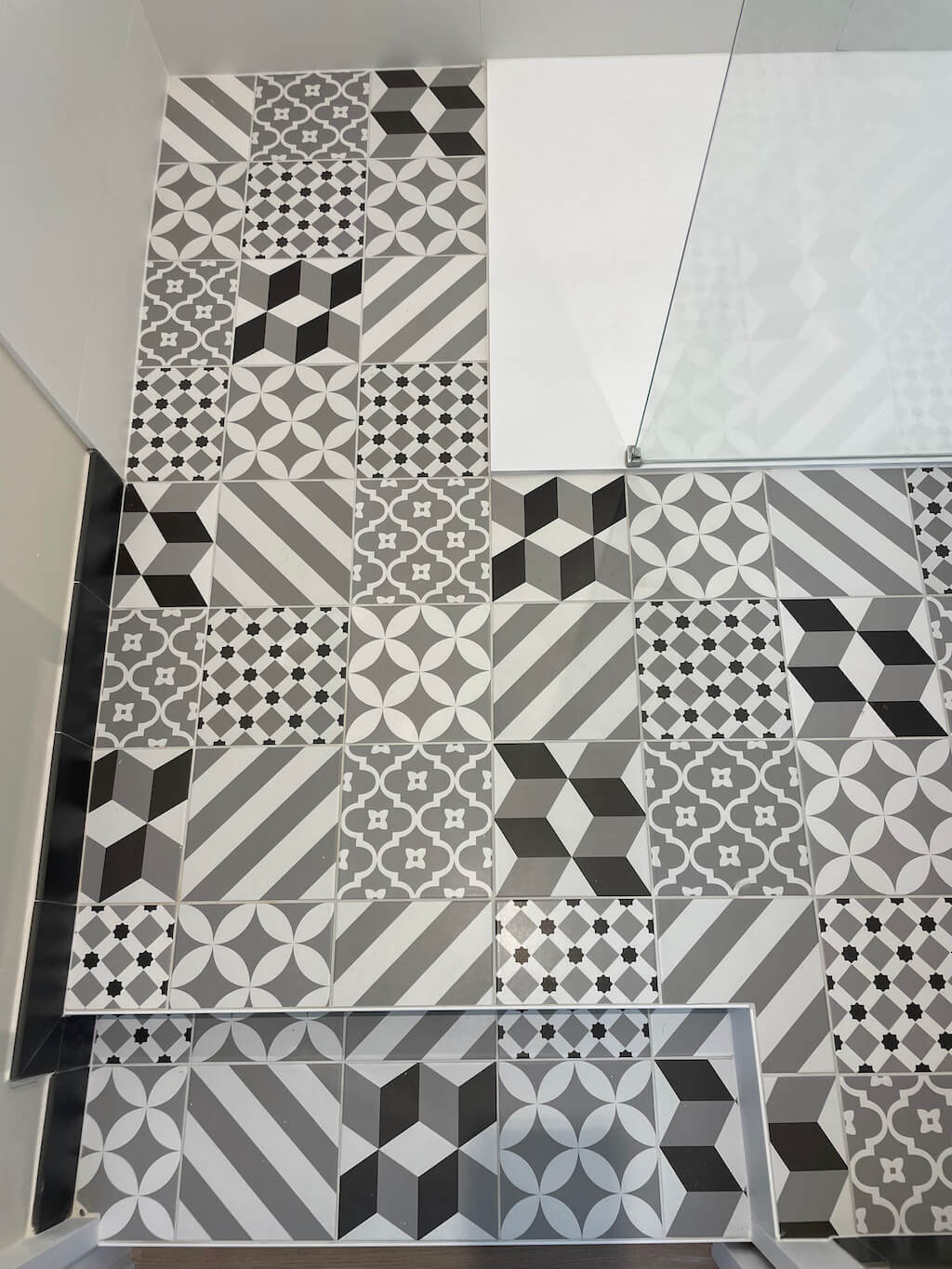 - Salles de bains et salles d’eau : création et aménagement de 2 salles d’eau et 1 salle de bain, avec installation complète de plomberie, pose de carrelage et réalisation de 3 estrades en bois pour surélever les zones d’eau.