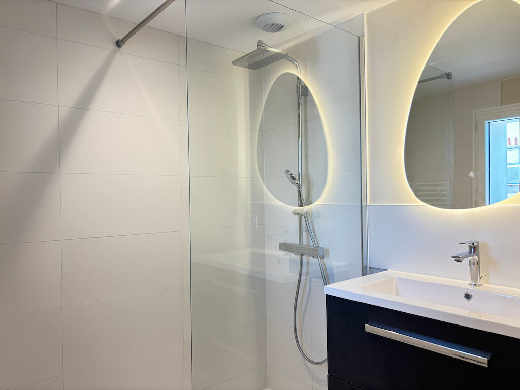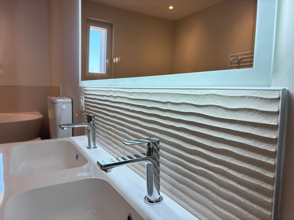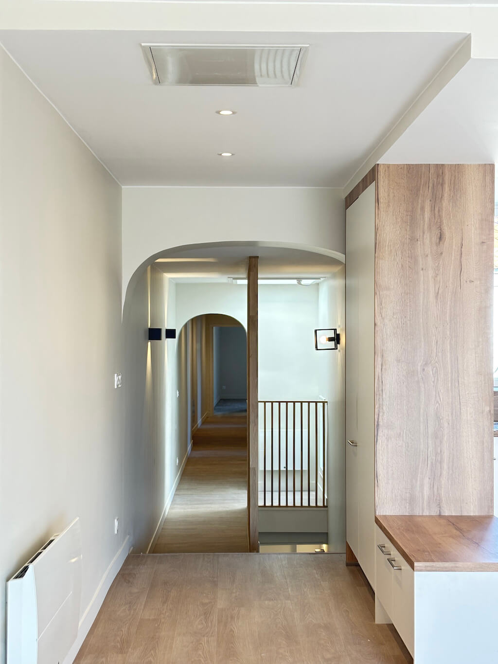 - Murs et finitions : ratissage des murs et peinture pour un rendu propre et contemporain.