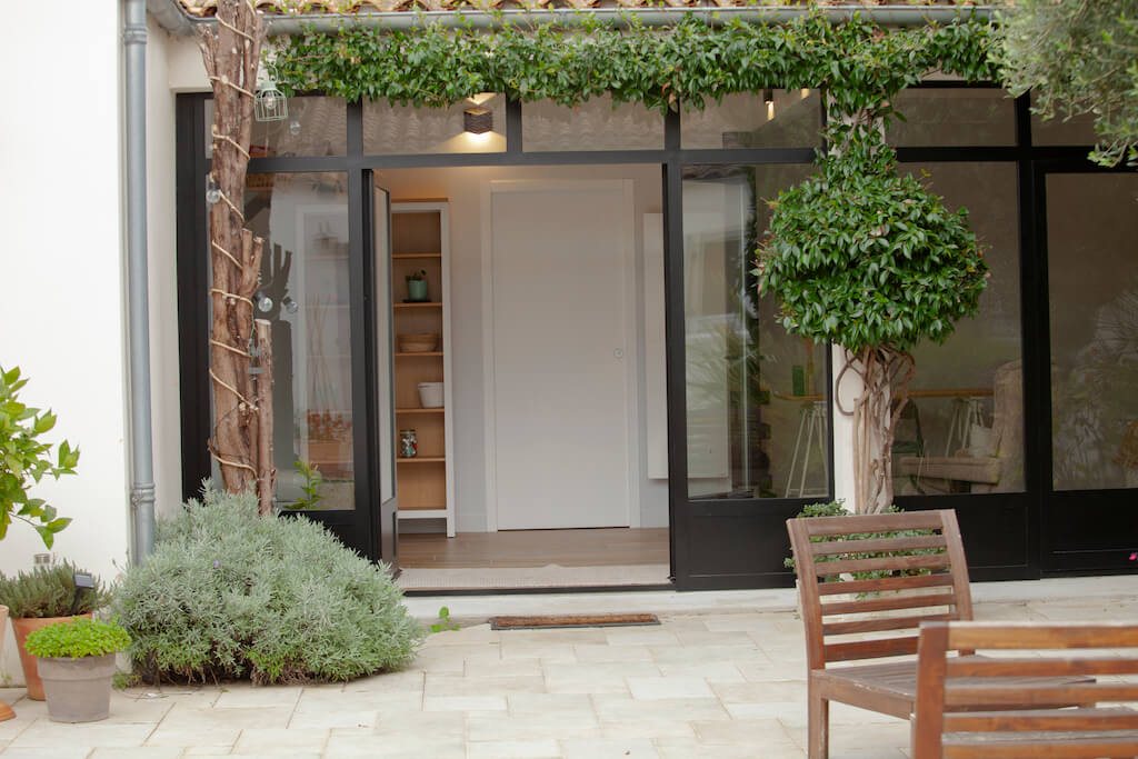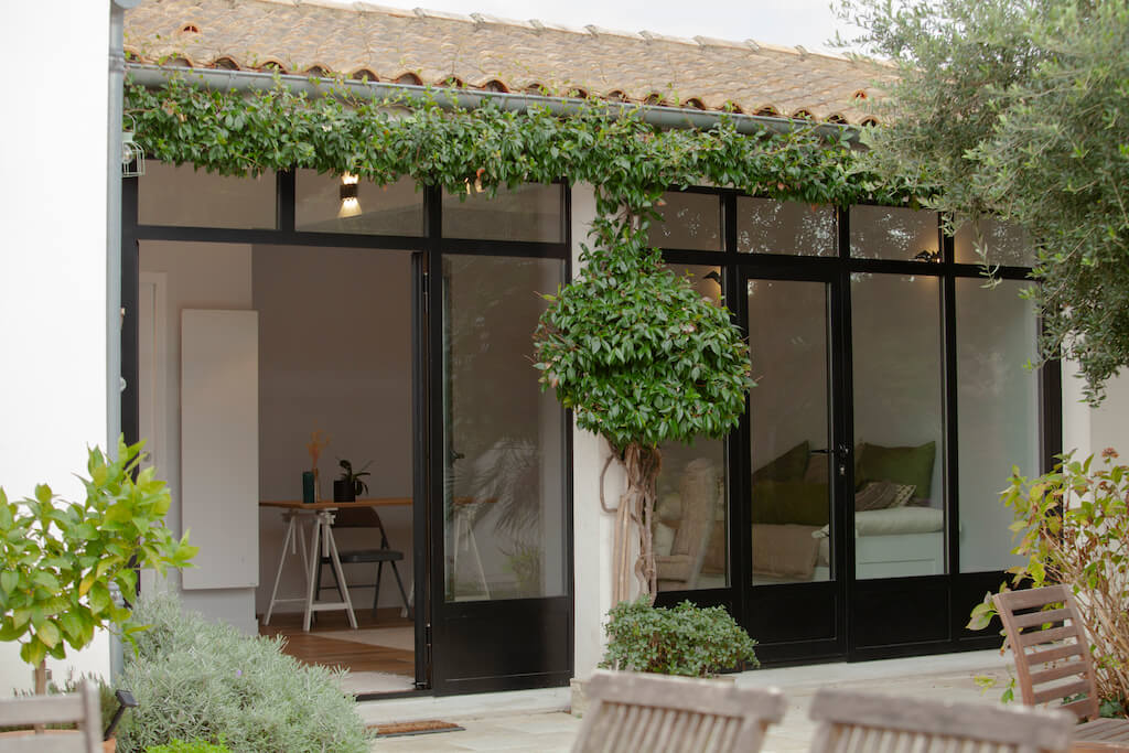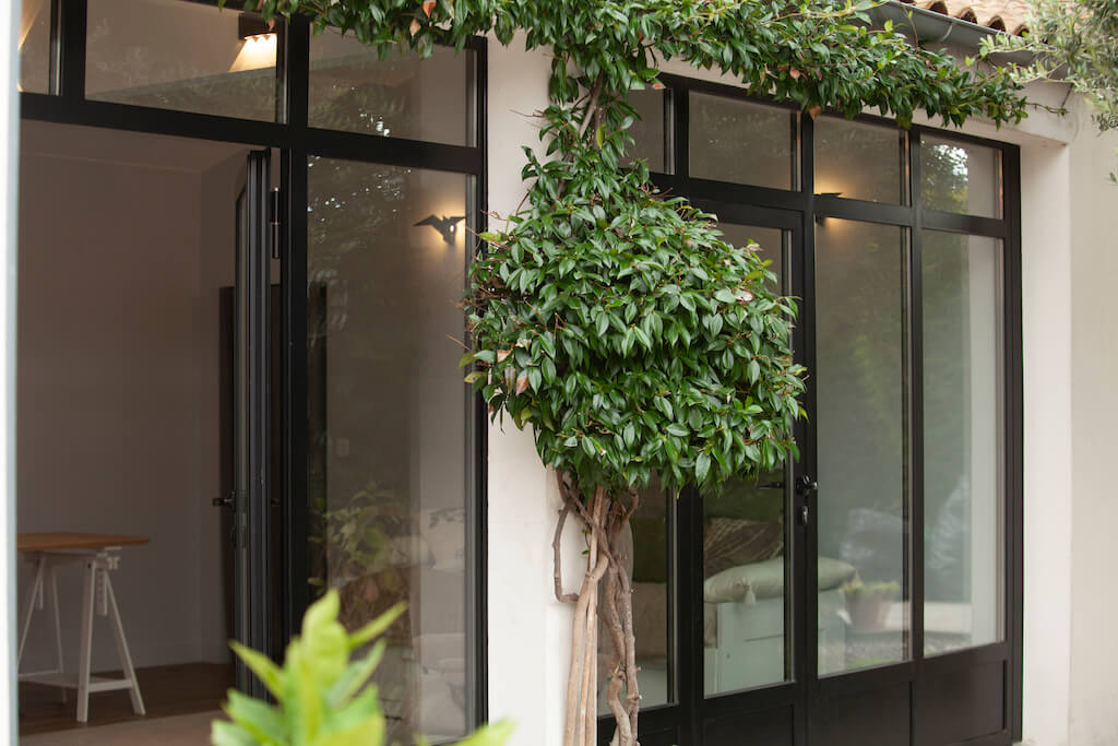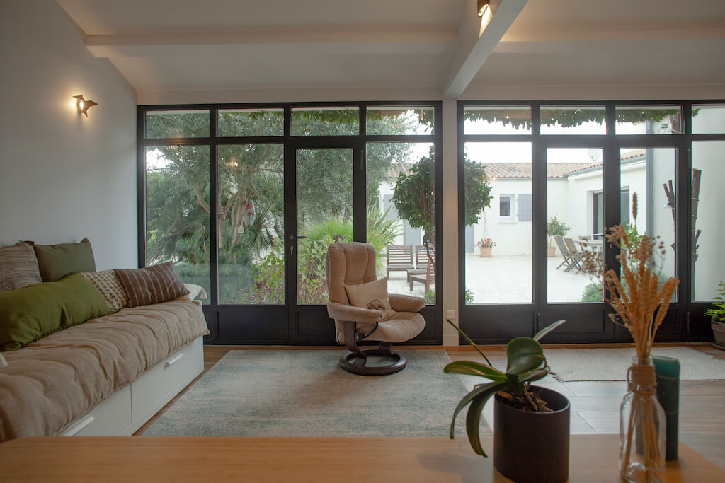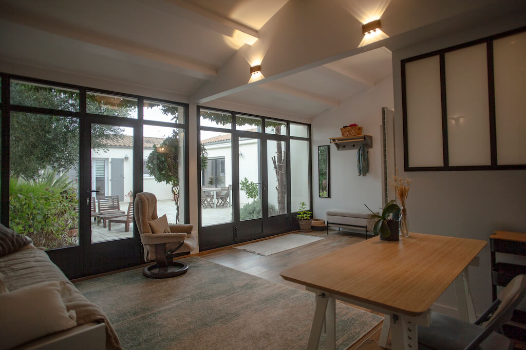 - Ouvertures et luminosité : installation de grandes baies vitrées métalliques laquées pour un apport maximal de lumière.