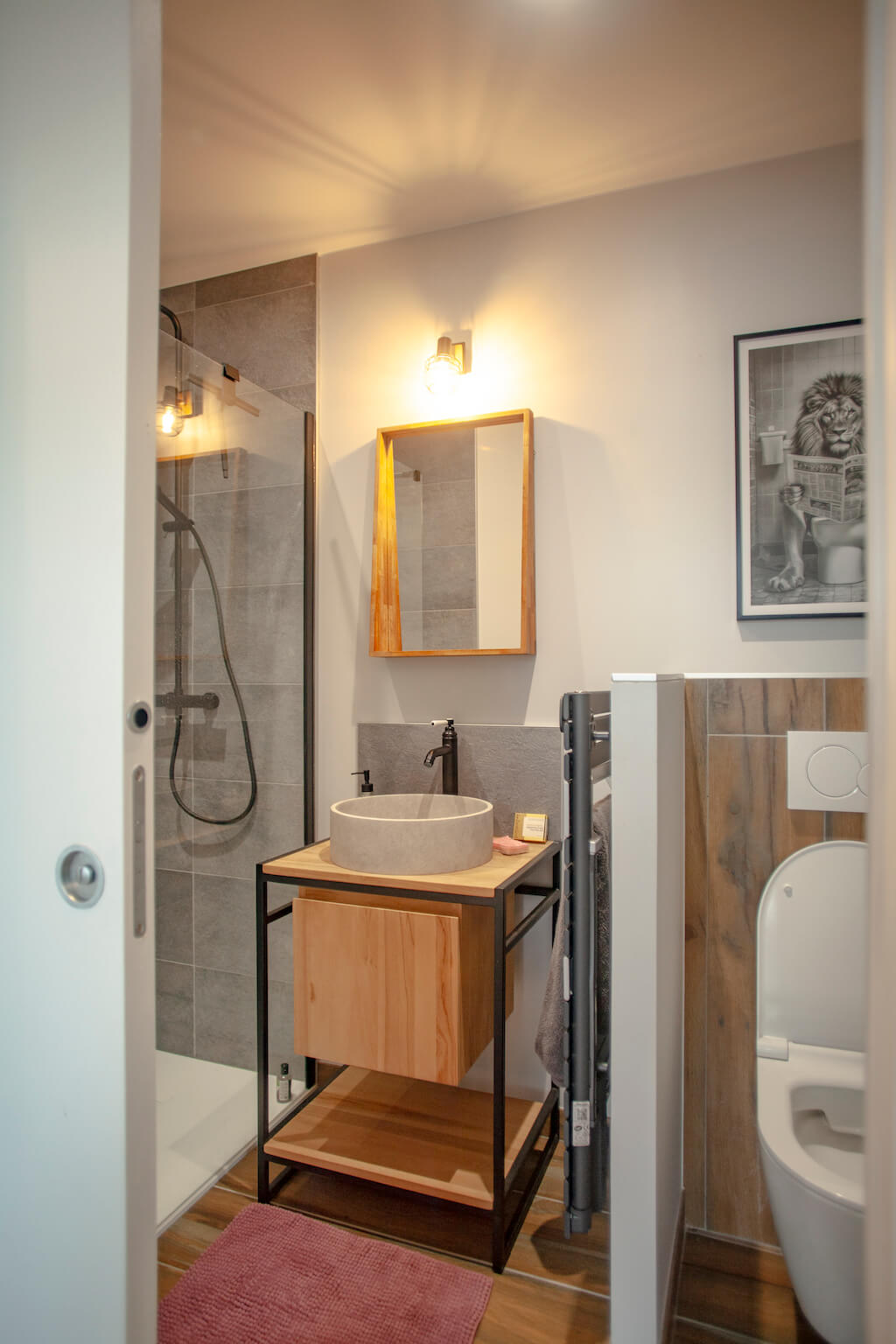 - Salle de bain : création d’une salle de bain moderne, fonctionnelle et adaptée à l’espace.